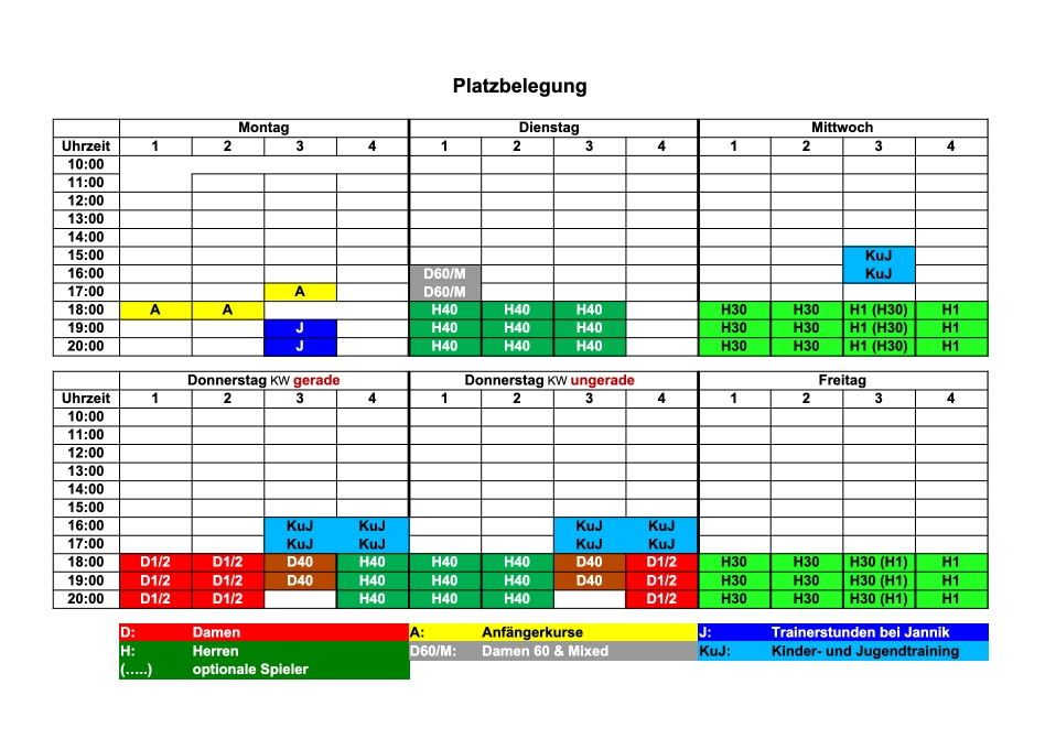 Platzbelegung